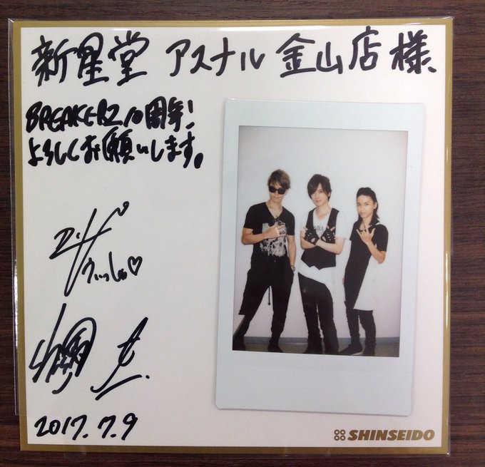Just like yesterday , they sang acoustic versions of Yume Monogatari + Ikusen earlier on https://twitter.com/KeBIrsMBhUCtzbU/...94248809971712 SHINPEI giving air handshake again https://pbs.twimg.com/media/DEROp5LUIAAmrFu.jpg:small https://twitter.com/shinpei_brz/stat...17929439416320 Autographed board (with a polaroid cover stuck on it) & Yume Monogatari poster that the guys gifted to Shinseido Asunal Kanayama before they head to Osaka https://pbs.twimg.com/media/DERQJf1UMAAwjPg.jpg:small https://pbs.twimg.com/media/DERQJ-zV0AAhYzy.jpg:small https://twitter.com/ssd_knym/status/883919569206693889 3rd Yume Monogatari mini live & handshake event taking place later on at Osaka's Abeno Q's Mall 3F Sky Court |