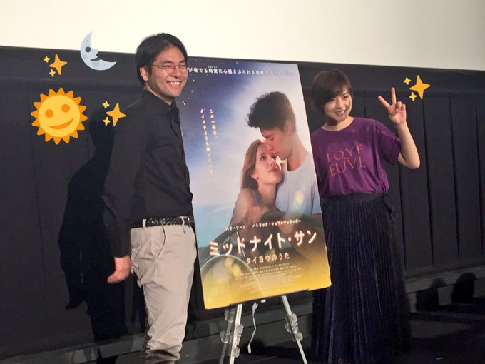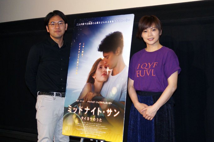 https://pbs.twimg.com/media/Ddotr9bVQAEcQbc.jpg:small https://pbs.twimg.com/media/DdokRpTVwAASAD5.jpg:small https://pbs.twimg.com/media/DdofcYyU8AIzyXN.jpg:small https://twitter.com/midnight_taiyou/...44862305185792 http://www.cinema-life.net/p180520_msev/ https://mdpr.jp/photo/detail/6384831 https://mdpr.jp/cinema/detail/1767646 https://news.walkerplus.com/article/147450/ https://www.oricon.co.jp/news/2111740/full Midnight Sun is a Hollywood remake of Taiyou no Uta , hence the reason on why yui & Koizumi Norihiro appeared yesterday during the Japan movie premiere of Midnight Sun |