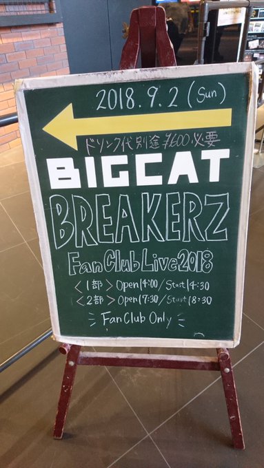 The new fanclub tour is to celebrate the 10th anniversary of BREAKERZ's fanclub team brz formation (established on 1st Sept 2008) The last time the guys did a fanclub tour was TEAM BREAKERZ VALENTINE LIVE 2012 GO!GO! VALENTINE 2 different concerts will take place on each BREAKERZ Fan Club Live 2018 day ie. the 1st concert will have an Acoustic Style while the 2nd concert will have a Rock Style For today's schedule Acoustic Style:開場14:00/開演14:30 Rock Style:開場17:30/開演18:30 http://bigcat-live.com/schedule#12697 http://bigcat-live.com/schedule#12699 SHINPEI backstage at BIG CAT dressing room https://pbs.twimg.com/media/DmDowTVU4AA3qx_.jpg:small Quote: