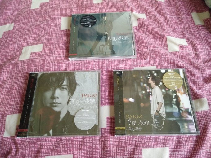 BREAKERZ - D×D×D + GREAT AMBITIOUS version special kira kira postcards that my friend redeemed them online https://image.ibb.co/c3vyro/1531465047499.jpg Also https://s15.postimg.cc/kpm6gfcq3/1531466403441.jpg Autographed DAIGO's Manatsu no Zankyou / Konya , Nostalgia de alternate jacket cover that DAIGO wrote my name on it :luv2 It was surreal yet flattering to hear DAIGO said my name during last week's LINE Live which he signed hundreds if not close to a thousand of alternate jacket covers within 2 hours o_O O_o Frankly BREAKERZ don't need to do such things for their fans but this's 1 of the many reasons why I've stayed in their fandom for so long And I'm not going anywhere |