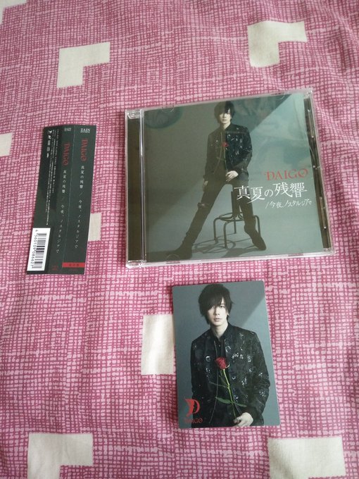 === My HMV Japan order came after a bit of delay no thanks to the bank that temporarily suspended my card cos they thought Lawson HMV was a fraud company o_O https://pbs.twimg.com/media/DiMgnImUcAEDHQ3.jpg:small Hilcrhyme - One Man EP https://pbs.twimg.com/media/DiMiN0wV4AAa5cA.jpg:small https://pbs.twimg.com/media/DiMiQAuUYAA17vH.jpg:small All 3 versions of DAIGO's Manatsu no Zankyou / Konya , Nostalgia de I received 3 sets of drink coasters as bonus items x) https://pbs.twimg.com/media/DiMijGHUwAApPB-.jpg:small https://pbs.twimg.com/media/DiMik_9U8AEJ2Jz.jpg:small Trading card that I obtained from the CD only version https://pbs.twimg.com/media/DiMjGeFVQAEACud.jpg:small Not my favourite out of the 4 :x Oh well I will buy the other 3 trading cards from my friend xD she bought a LOT & I'm talking about more than 20 CD only copies in total so ahahahaha :roflmao |