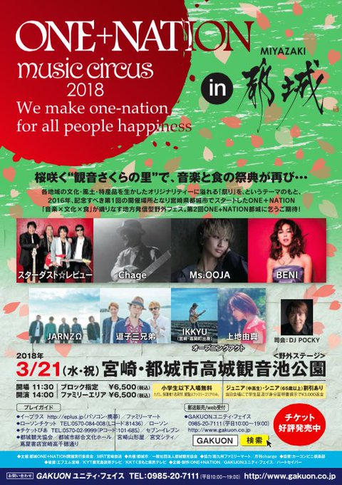 BENI & other artistes will be performing at ONE+NATION music circus in 都城 next Wed