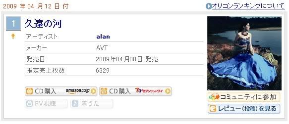 ^I still can't believe it. alan got #1 on the daily chart. Hopefully her next single does as well as Kuon no Kawa. And most definitely this is her first Top 10. Avex Trax needs to do what Rhythm Zone does with Tohoshinki, and release her stuff at the same time with artists who aren't that popular in Japan. After all that's how Tohoshinki got all of their number-ones. :yes