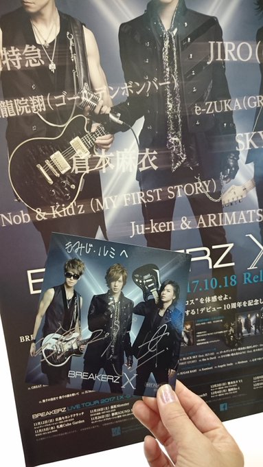 BREAKERZ LIVE TOUR 2017 【X-cross-】 was originally supposed to conclude on 15th Dec at Tokyo's TSUTAYA O-EAST , but now the tour will conclude on 30th Dec at Tokyo's EX THEATER ROPPONGI . November tour dates 12th Nov (Sun) @ Hiroshima's Second Clutch 15th Nov (Wed) @ Sapporo's Cube Garden 18th Nov (Sat) @ Takamatsu's Monster 26th Nov (Sun) @ Shizuoka's SOUND SHOWER ark 29th Nov (Wed) @ Sendai's darwin December tour dates 1st Dec (Fri) @ Shin Yokohama's New Side Beach 3rd Dec (Sun) @ Kumamoto's Be-9 4th Dec (Mon) @ Fukuoka's Be-1 9th Dec (Sat) @ Osaka's Umeda Banana Hall 10th Dec (Sun) @ Nagoya's ReNY 15th Dec (Fri) @ Tokyo's TSUTAYA O-EAST NEW -> 30th Dec (Sat) @ Tokyo's EX THEATER ROPPONGI Quote: