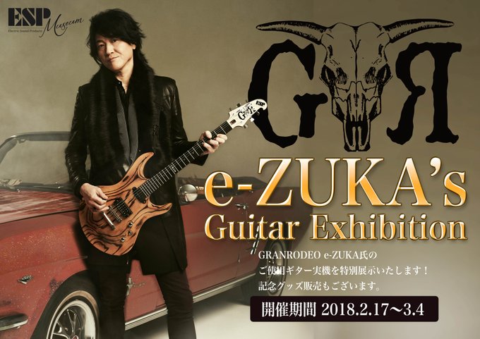 The guitar exhibition will be displayed at ESP MUSEUM between 11am - 7pm , admission is free http://www.granrodeo.net/news/2018/01/e-zukas.php When my sister attended GRANRODEO 10th ANNIVERSARY LIVE 2015 G10 ROCK☆SHOW -RODEO DECADE- , 1 section inside Makuhari Messe they were selling guitars which the designs were customised by e-ZUKA and despite the hefty price tags , they were still sold out o_O |