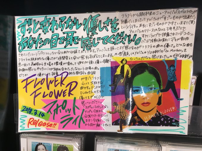 Tower Records Shibuya https://pbs.twimg.com/media/DYN39zZVMAUp7ve.jpg:small https://pbs.twimg.com/media/DYN39zYV4AEkvR2.jpg:small https://twitter.com/TOWER_Shibuya/st...53864120803328 Video clip of them signing the Spotlight promo standee inside Tower Records Shibuya https://twitter.com/FFLOWER_STAFF/st...54331617882112 Video clip of them signing the Spotlight promo standee inside TSUTAYA Shibuya https://twitter.com/FFLOWER_STAFF/st...56631547723776 I downloaded Spotlight before I went to sleep , going to listen to it after this |