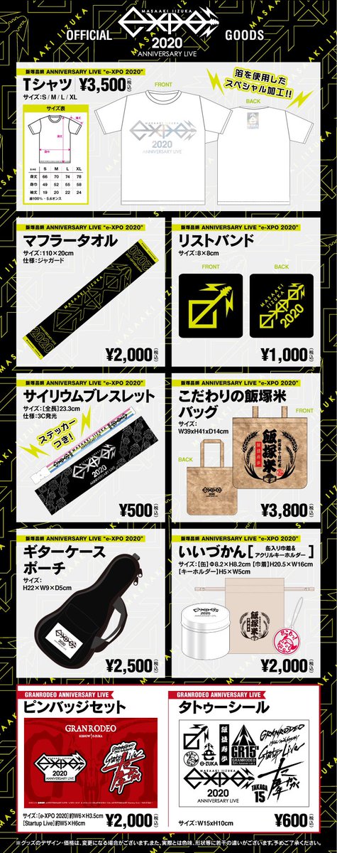 Lantis has released the concert goods for both 飯塚昌明 ANNIVERSARY LIVE “e-XPO 2020” & GRANRODEO 15th ANNIVERSARY Startup Live ~Takaga 15年~