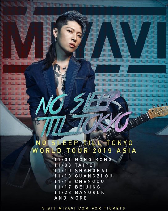 https://pbs.twimg.com/media/D_GZEScU4AACcax.jpg:small https://twitter.com/MIYAVI_OFFICIAL/...67690267680768 Confirmed Asian tour dates so far : November 1st - Hong Kong November 3rd - Taipei November 10th - Shanghai November 13th - Guangzhou November 15th - Chengdu November 17th - Beijing November 23rd - Bangkok |