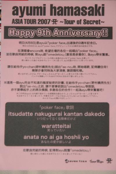 http://i153.photobucket.com/albums/s...n/IMG_2361.jpg The sheet asking fans to sing Poker Face http://i153.photobucket.com/albums/s...n/IMG_2366.jpg My ayu towel and ayupan phone strap! http://i153.photobucket.com/albums/s...n/IMG_2367.jpg Ayupan phone strap close up http://i153.photobucket.com/albums/s...n/IMG_2362.jpg |
