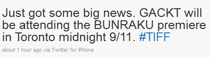 i think those who hadn't heard yet, should know that Gackt had a role in a Hollywood movie called BUNRAKU a couple of years ago, and now after long waiting the movie is finally finished and ready to be shown! It's gonna be shown in TORONTO film fastival and Gackt will be attending the premier: