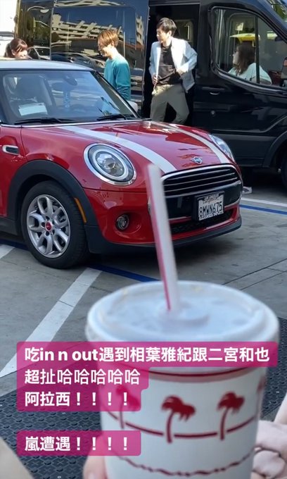 Looks like ARASHI are back in USA again as someone spotted Aiba & Nino outside an In-N-Out Burger outlet