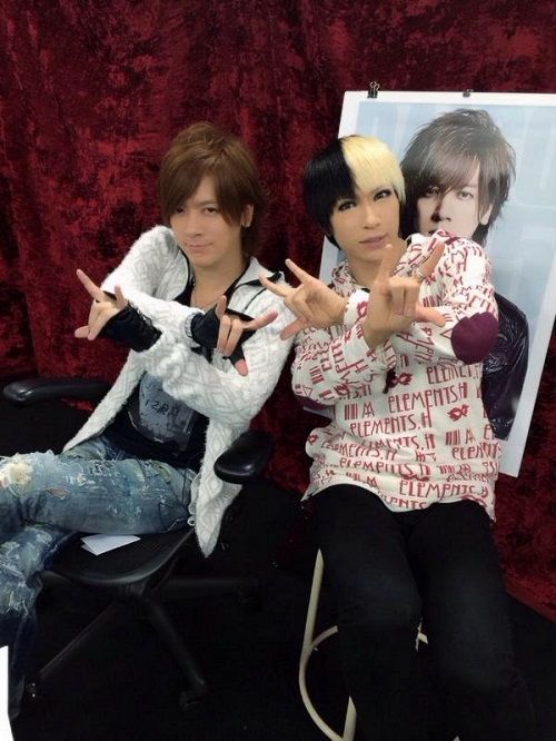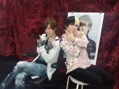 Utahiroba Jun who is the bassist of Golden Bomber appeared as a last minute guest at this month's instalment of DAIGO P . DAIGO uploaded this photo of himself with JunJun (Utahiroba Jun's nickname) via his Twitter after DAIGO P ended : ![]() Quote: