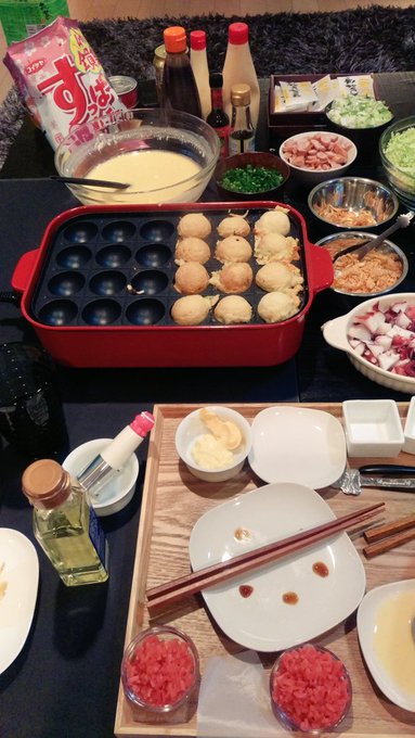MUSCLE ATTACK's drummer HIDEHIRO had a Takoyaki party at SHINPEI's house today