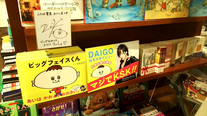 Tokyo's Futaba Shobo Marunouchi displayed copies of DAIGO's new picture book Big Face Kun which's officially released today