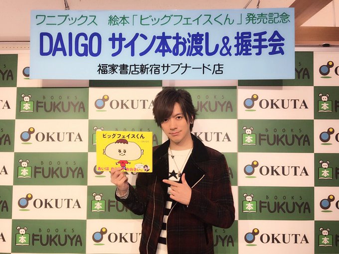 DAIGO at today's autograph & handshake event at Fukuya Bookstore Shinjuku Subnade Store for the launch of his new picture book Big Face Kun