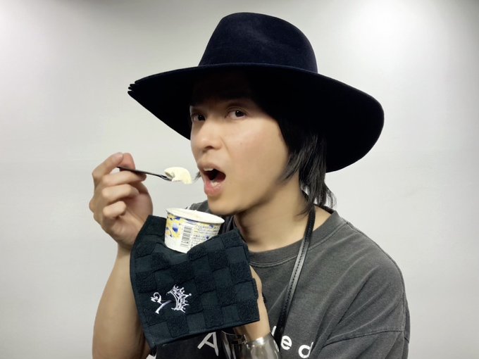 AKIHIDE promoting/using the BREAKERZ LIVE 2021 ~Shikkoku no Milky Way AKIHIDE’s BIRTHDAY LIVE~ Shikkoku no Noryou Set's ice cream spoon & hand towel