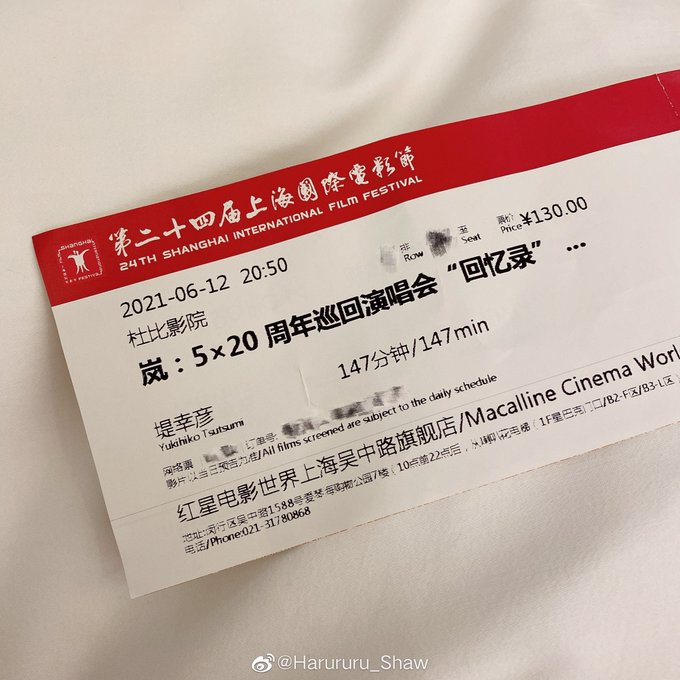 ARASHI Anniversary Tour 5×20 FILM “Record of Memories” is the 1st ARASHI let alone J&A live film that will be shown at next month's Shanghai International Film Festival