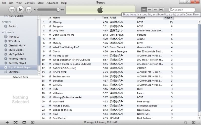 I don't use iTunes to play my music so I'll just use Top 25 Ayu plays from last.fm: