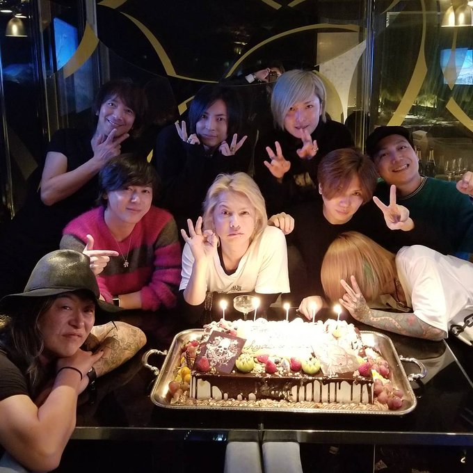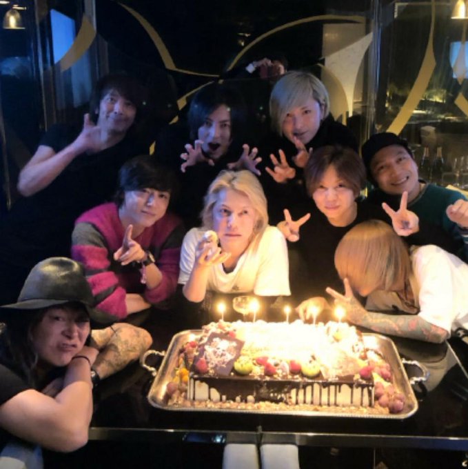 A group of musicians got together with hyde & yasu and celebrated both their birthdays early as both of them are born in the same month ie. January
