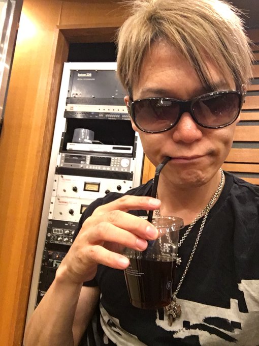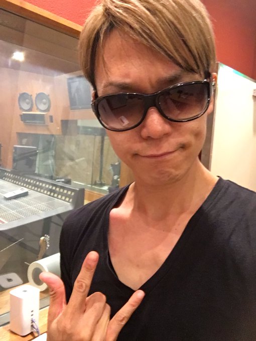 AKIHIDE's mascot Namida-kun posted this photo of AKIHIDE which he recorded the dialogue for the Tsuki to Fune sound card inside the studio
