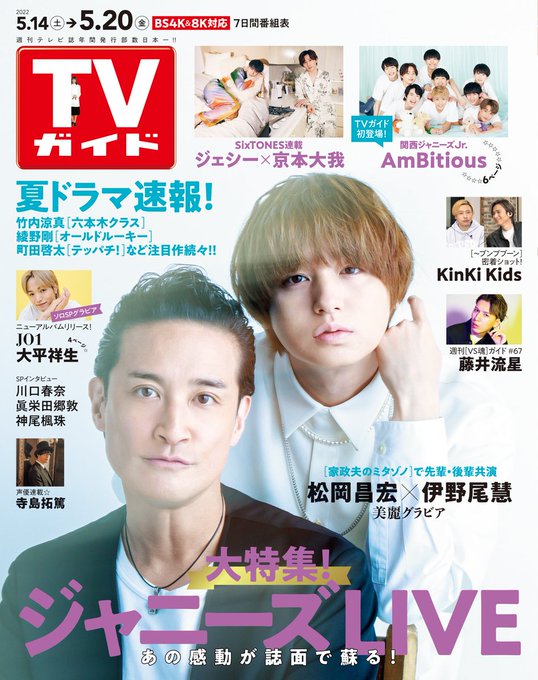 Inoo & TOKIO's Matsuoka on the cover of Shukan TV Guide , now on sale
