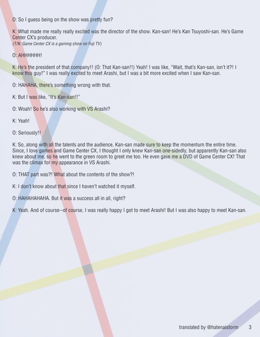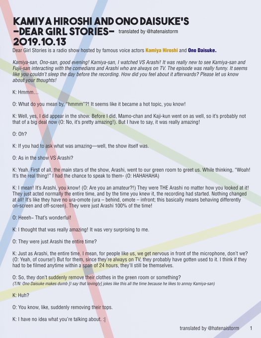 https://www.youtube.com/watch?v=ih1id9f6p-M https://twitter.com/unleashthegeek/s...71565997023232 I always remember the 1 infamous line Aiba said when they made their debut in Hawaii 20 years ago xD
