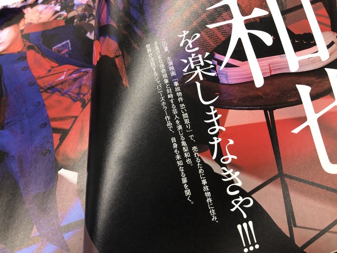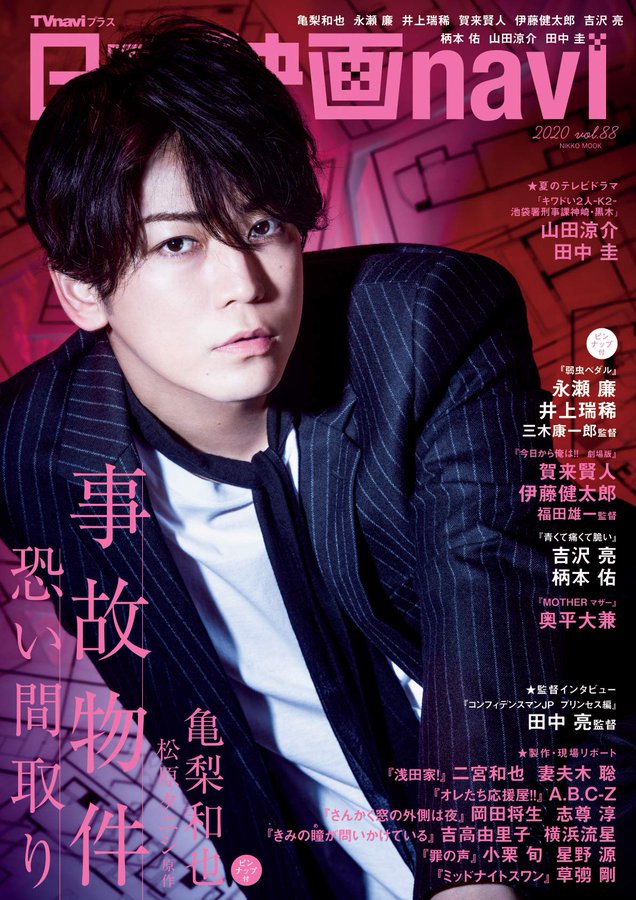 - CLUSTER - J Movie Magazine - CINEMA SQUARE - Nihon Eiga navi vol.88 https://twitter.com/jikobukken2020/s...90004656480256 Kame on the cover of Nihon Eiga navi vol.88 https://twitter.com/TVnavi_PR/status...97957638742016 And Nihon Eiga navi utilised Kame's band colour yet again