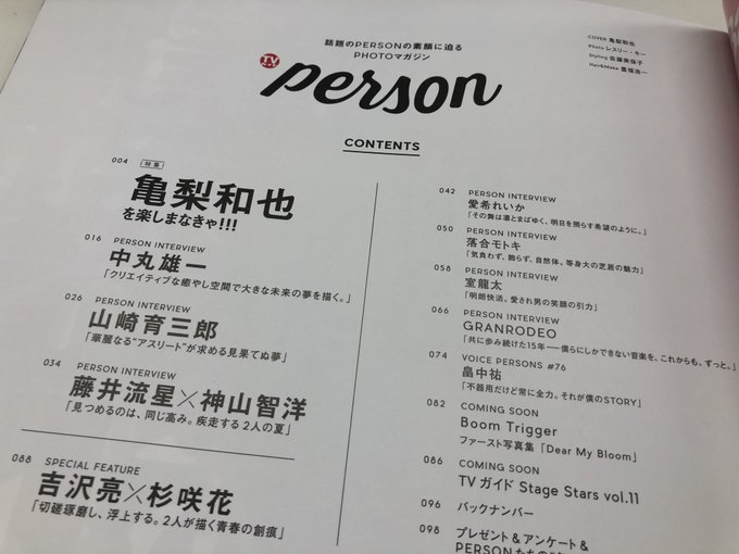 TV Guide PERSON vol.96 did a 12 paged interview with Kame in line with him talking about Jiko Bukken Kowai Madori