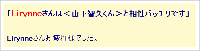 ![]() I dunno if this has been posted here before but someone posted it on JPM for fun. It tells you which JE member you are most compatible with. The first blank space is for your name, then next row is for your birthday, third is astro sign, fourth is blood type, fifth is height, sixth is weight , and seventh is location. Since we are oversea people we pick the last option "外国". Lastly click the long button on the bottom and you result is where I circled. ![]() Well I tested it for fun and got Ohno from Arashi
