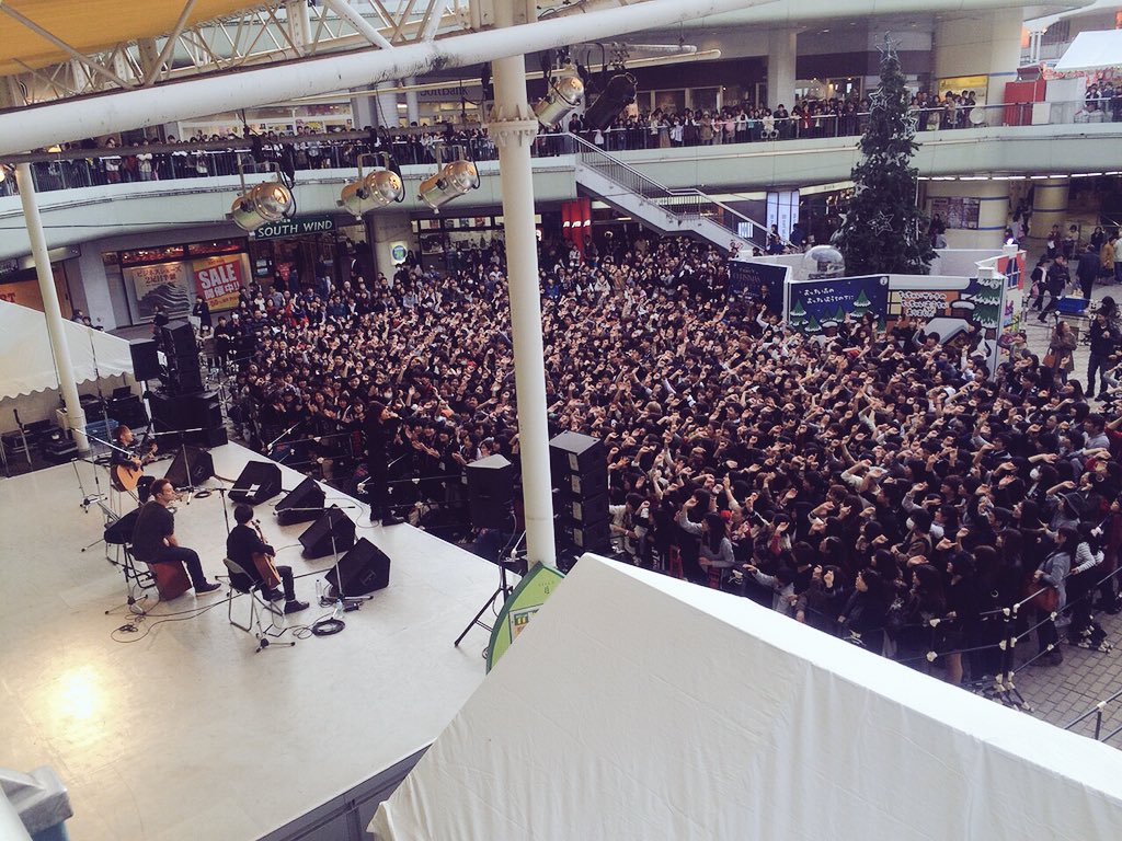 Photos of SPYAIR at Osaka's Senri Serushī 1F Serushi Hiroba today as part of their 2nd free live & high touch event