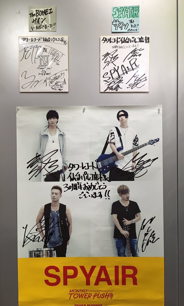 Autographed 4 poster & board that Tower Records Sendai received on Friday