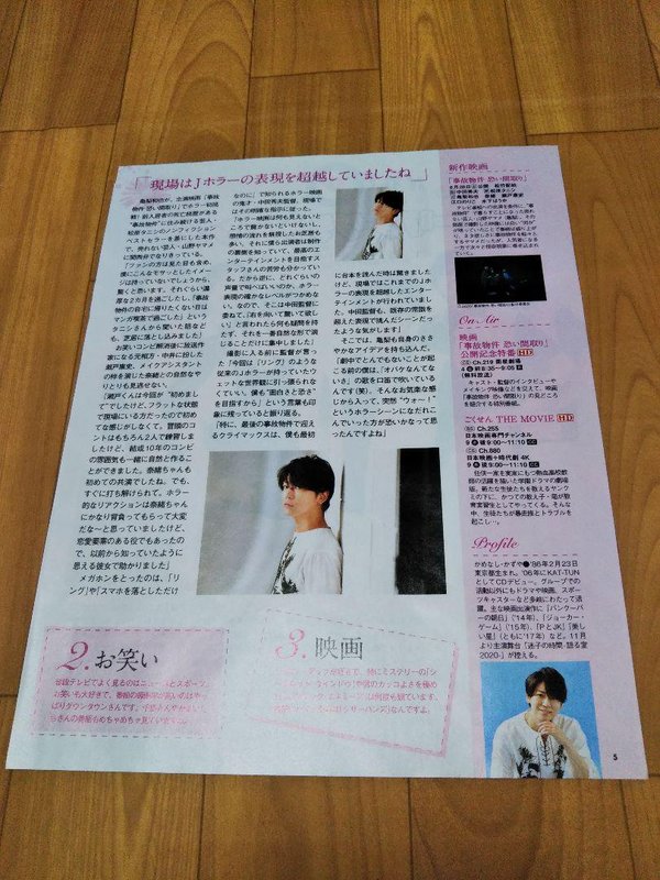 Sneak peak of Kame on next Thurs's Sakurai Ariyoshi The Yakai alongside with his Jiko Bukken Kowai Madori movie co-stars , Nao & Kiyohara Kaya