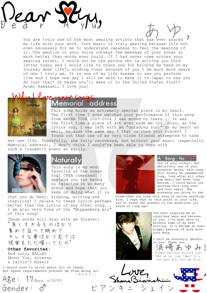 "From 2004 to 2011, thank you Ayu for sharing your wonderful music to my life..." |