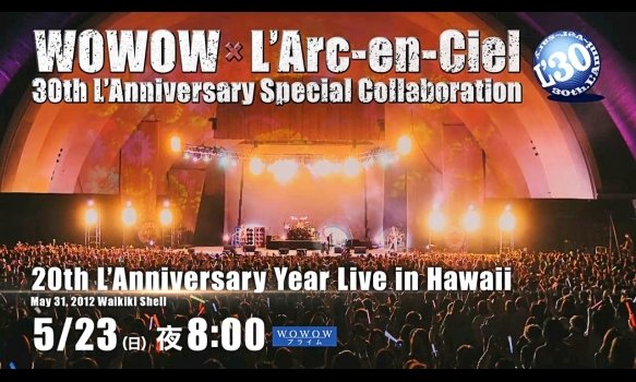 WOWOW will broadcast L'Arc~en~Ciel 「20th L'Anniversary Year Live in Hawaii」 May 31, 2012 Waikiki Shell this coming Sun night