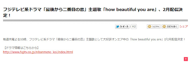 they're saying about 'how beautiful you are" being used for a dorama on fujiTV