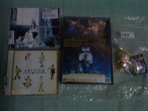 I got: Koda Kumi - Love across the ocean & COME WITH ME, Ayu's A BALLADS and the V/A Song+Nation album. It was amazing. xD sometimes I wish...we'd get robbed...and id loose everything...then I can...start all over. o__o LOL. xD (jk lol. that would cause me devastation of an inhumane level) But anyways, y'day I recieved my AAA Choice is Yours CD+Live DVD and my Urata Naoya Turn Over CD+DVD <3 hehehe so pretty.
