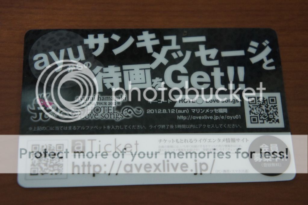 I only know a little Japanese, but from what I can read, it's a thank you message, and there's a key code to for a ticket to a live? I'm assuming the 2012 arena tour.