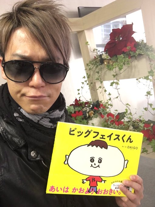 SHINPEI holding a copy of DAIGO's new picture book Big Face Kun