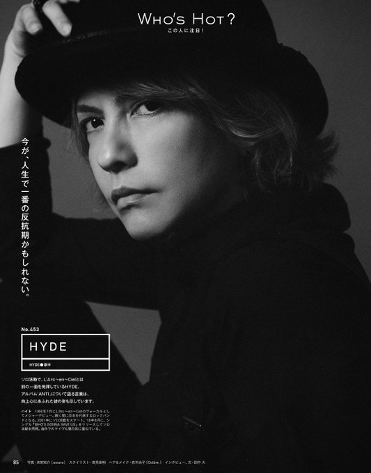 https://pbs.twimg.com/media/D82-J0MUcAE6NC7.jpg:small https://twitter.com/with_magazine/st...76149440442368 https://pbs.twimg.com/media/D824imNUYAAPyfH.jpg:small https://twitter.com/with_magazine/st...70025345503232 https://pbs.twimg.com/media/D82q2jIUYAAZdtG.jpg:small https://pbs.twimg.com/media/D82vPiaUEAAiWJ-.jpg:small https://twitter.com/with_magazine/st...59361596088320 Seeing that ANTI will at last released physically next Wed , hyde should perform at MUSIC STATION next Fri to promote it , if there's any broadcast next week ie. |