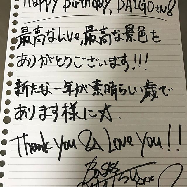 Birthday message the guys' backup bassist MATSU wrote for DAIGO