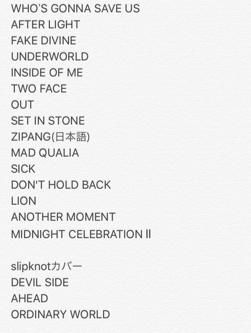 Today's Day 2 setlist of HYDE LIVE 2019