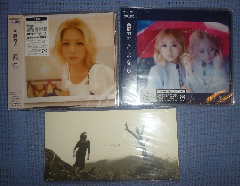 Kana Nishino - Namidairo CD+DVD Kana Nishino - Sayonara CD+DVD Maaya Sakamoto - Hashiru 8cm single Kana singles that I missed, and the final Maaya Sakamoto single I needed to complete my Maaya discography :heart :love |