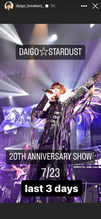 3 more days to DAIGO☆STARDUST 20th ANNIVERSARY “ONE NIGHT SPACEY SHOW”