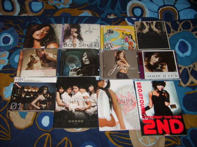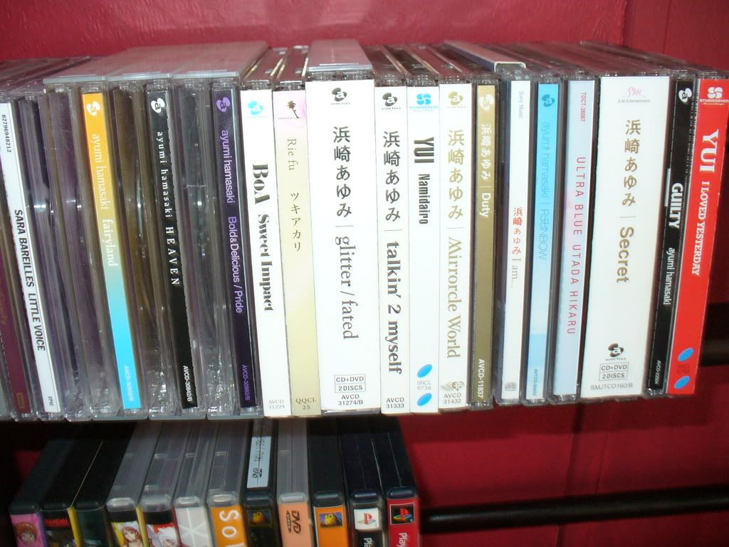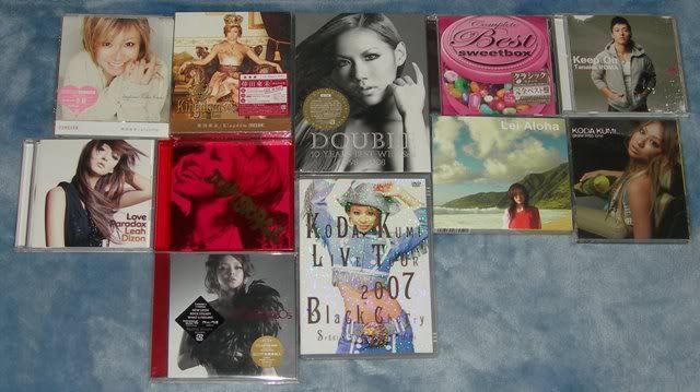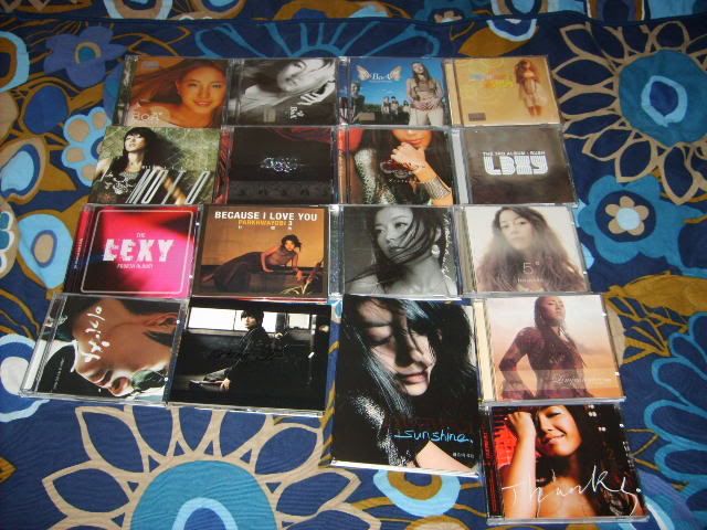 http://i29.tinypic.com/2n9x7gy.png From left to right: BoA - ID; Peace B BoA - No.1 BoA - Listen to My Heart BoA - Valenti BoA - Love and Honesty +DVD BoA - My Name BoA - Moto/Girls on Top BoA - Outgrow +DVD BoA - Made in 20 BoA - The Face + 2DVD Utada Hikaru - Deep River Utada - Exodus Ayumi Hamasaki - Rainbow Ayumi Hamasaki - My Story +DVD Ayumi Hamasaki - (miss)understood +DVD Ayumi Hamasaki - Guilty +DVD Guilty photobook next to it Ami Suzuki - Dolce +DVD Namie Amuro - Queen of Hip-Pop Namie Amuro - Play +DVD Hitomi Shimatani - Tsuioku + Love Letter Hitomi Shimatani - Heart and Symphony Koda Kumi - Black Cherry Koda Kumi - Kingdom +2DVD Jolin Tsai - Agent J Lee Jung Hyun - Fantastic Girl |