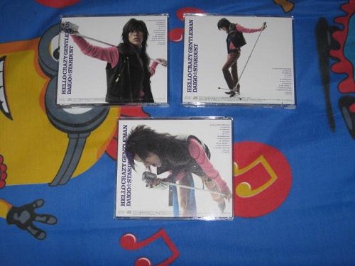 http://img.photobucket.com/albums/v2...I/IMG_6450.jpg 2 limited editions copies of DAIGO☆STARDUST's HELLO CRAZY GENTLEMAN album The Ebay seller obviously has no idea just how much in demand these copies are cos I was charged very reasonably cheap for them + they're completely brand new/sealed too :heart In total , my 3 limited editions copies of HELLO CRAZY GENTLEMAN http://img.photobucket.com/albums/v2...I/IMG_6458.jpg The back covers http://img.photobucket.com/albums/v2...I/IMG_6461.jpg Still an awesome album up to now , pity DAIGO☆STARDUST's career didn't work out as he truly has some great songs in his discography |
