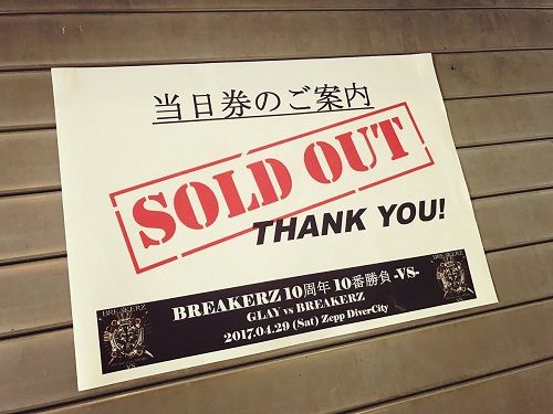 Proof that yesterday's 10th final BREAKERZ 10 Shunen 10ban Shoubu -VS- was sold out