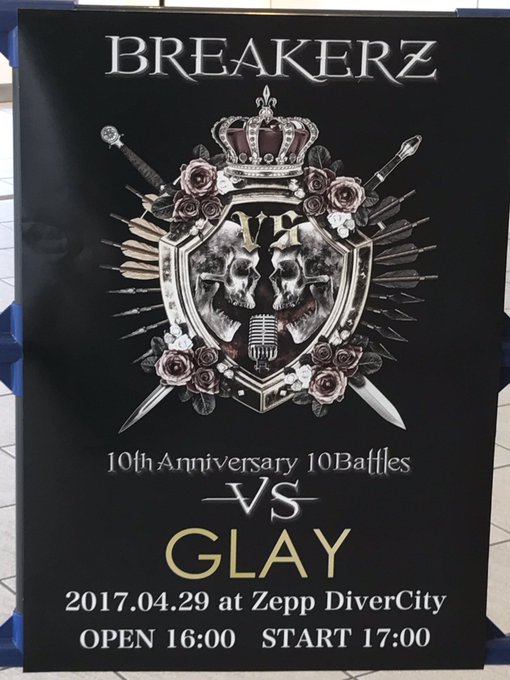 And for today , it features the 1 & only GLAY ! 29th April 2017 ; Today is a public holiday in Japan ie. Showa no Hi Doors open : 4pm / Concert starts : 5pm Tokyo's Zepp DiverCity http://breakerz-web.net/special/10th/-vs-.html http://hall.zepp.co.jp/divercity/ Just like the 9th instalment featuring Golden Bomber , I think today's concert is also sold out seeing that there's no announcement listed online that you can buy tickets at Zepp DiverCity On that note , it's a wrap for BREAKERZ 10 Shunen 10ban Shoubu -VS- and let's bring on BREAKERZ Debut 10th Anniversary 【BREAKERZ X】 MEMORY + PROMISE ! |
