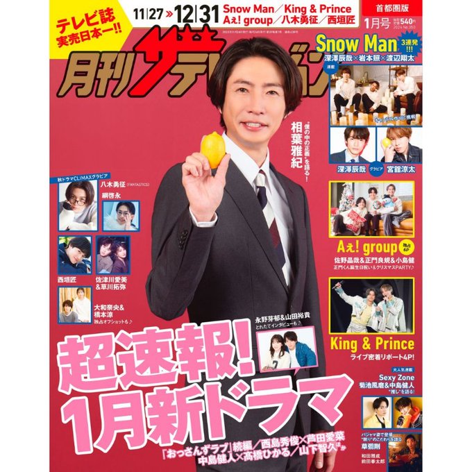 Aiba on the cover of Gekkan The Television Jan 2024 out next Fri