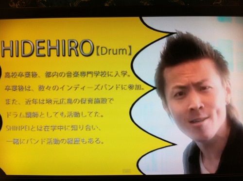 While in SHINPEI Solo Project 「MUSCLE ATTACK」E no michi ~Vol.3~ , SHINPEI ropped in a guitarist (whose name's Shunp) . Now in SHINPEI Solo Project 「MUSCLE ATTACK」E no michi ~Vol.5~ , after recruiting Jong & Shunp , in comes probably the last member of MUSCLE ATTACK in the form of a drummer . Say hello to HIDEHIRO, everybody as what SHINPEI wrote on his blog yesterday : http://img.photobucket.com/albums/v2...3731_large.jpg Based on what SHINPEI wrote , he & HIDEHIRO know each other for a really long time , close to 10 years worth of a friendship o_o In addition to being a musician , HIDEHIRO is also supposedly a qualified gym instructor xD xD xD Why I wouldn't be surprised if both SHINPEI & HIDEHIRO do quite a lot of stuff together , like muscle training & all :p All the mayhem going on in recruiting the latest new member of MUSCLE ATTACK can be viewed in SHINPEI Solo Project 「MUSCLE ATTACK」E no michi ~Vol.5~ xD And here's the current lineup for MUSCLE ATTACK : 1) SHINPEI - guitarist & vocals (yes he's going to sing lead vocals in MUSCLE ATTACK , as noted in SHINPEI Solo Project 「MUSCLE ATTACK」E no michi ~Vol.4~ :D) 2) Shunp - guitarist 3) Jong - bassist 4) HIDEHIRO - drummer Judging from what SHINPEI wrote/tweeted , this seems to be the finalised lineup for MUSCLE ATTACK , whee :D |