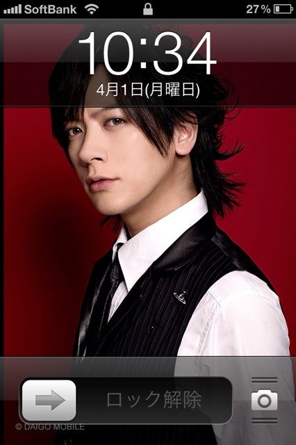 DAIGO MOBILE was launched yesterday morning at 10am / Japan time & what better way for DAIGO to ***** himself with some of the photos that only can be seen via DAIGO MOBILE . In this sense , I'm not complaining ... for once :p 1st photo : http://img.photobucket.com/albums/v2...20II/TYkY4.jpg Caption included - DAIGO MOBILE!登録できたあ!やったあ( ´ ▽ ` )ノ http://daigo.mobi http://p.twipple.jp/TYkY4 2nd photo : http://img.photobucket.com/albums/v2...20II/kPC9s.jpg Caption included - 早速待ち受けにしたった! 自分待ち受け!やるな!俺!笑 http://daigo.mobi http://p.twipple.jp/kPC9s 3rd photo : http://img.photobucket.com/albums/v2...0II/zD6r71.jpg Caption included - DAIGO MOBILE、改めて本日オープン! 着ボイス!待ち受け画像!4月8日、バースデーパーティーのチケット予約などいろいろ楽しめる よ! http://daigo.mobi また待ち受け変えたった!笑 http://p.twipple.jp/zD6r7 *______* Omg 2nd & 3rd photos totally killed me big time xD xD xD & in typical DAIGO style , the photos of him are so very shameless which's so ~_~ ~_~ ~_~ The other photos I've already seen which're uploaded via DAIGO MOBILE (only accessible via Japanese handphones) , are also equally fabulous <3 Something about DAIGO wearing a suit + a red colour background in the backdrop = win win combination big time :D And really man , he's going to be 35 in in less than 1 week ? Get outta here man xD |